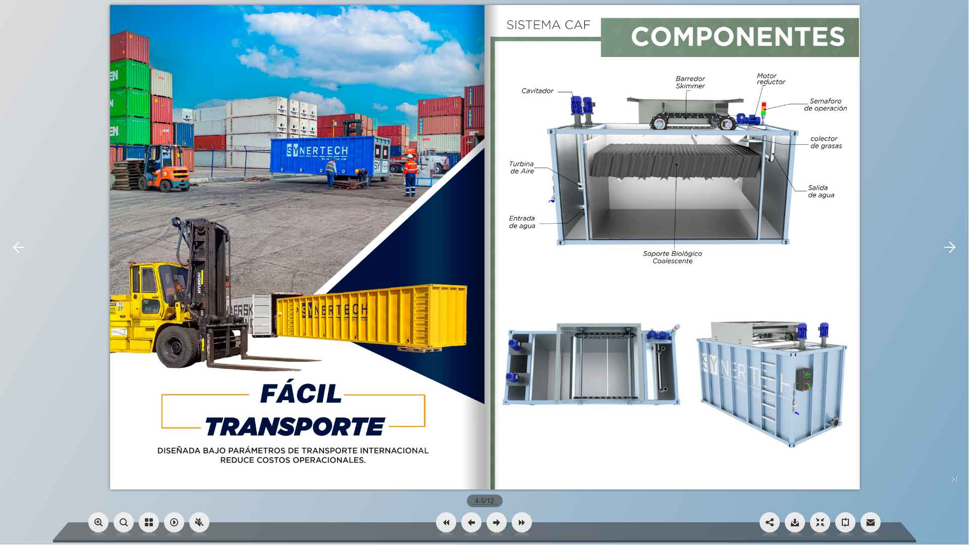 Inyecta aire atmosférico por fuerza centrífuga. Sin compresores, ofrece un bajo consumo energético para separar grasas pesadas e hidrocarburos.