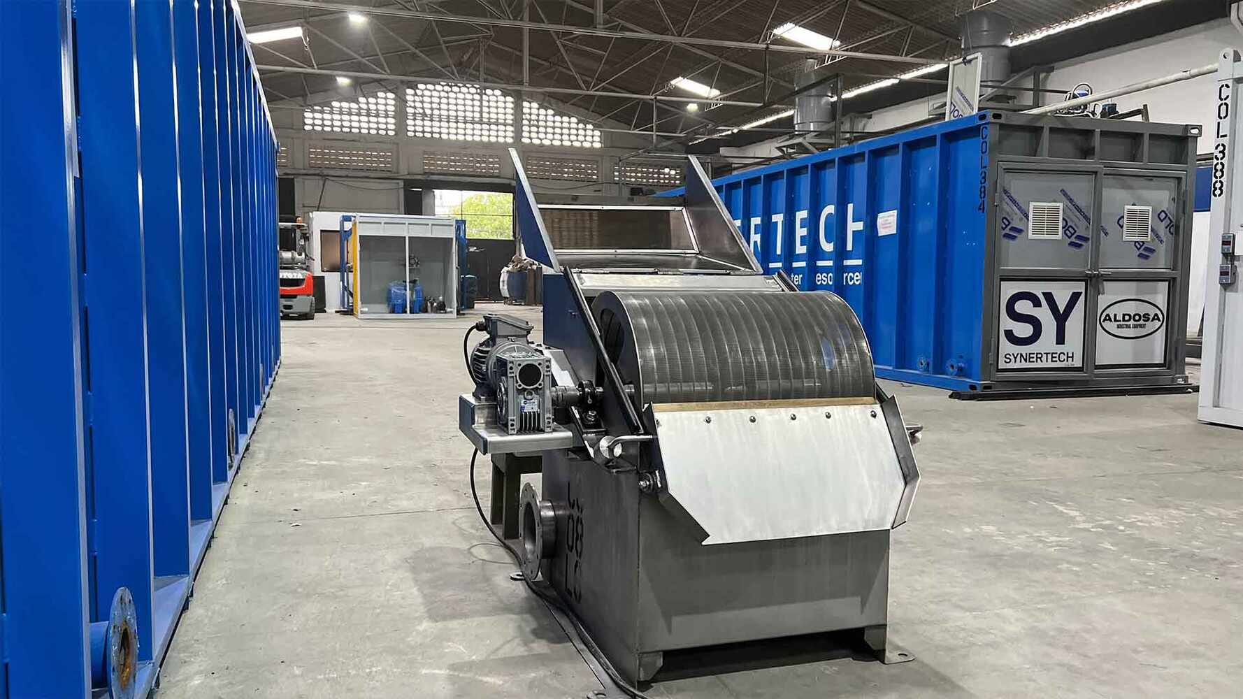 El Tamiz rotativo es una maquina diseñada para separar de manera continua los sólidos en suspensión de un líquido. Retiene partículas desde 0.5 mm a 1 mm, en función del modelo, en un espacio reducido gracias a su diseño de construcción.